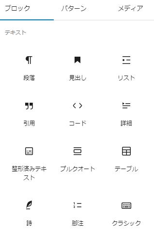 ブログカードを挿入する場所でブロックパターンから「クラシック」をクリックします。