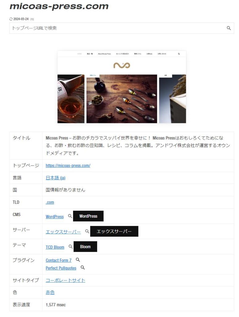 - WordPress、Wix、ShopifyなどのCMSで作成されたサイトかどうか