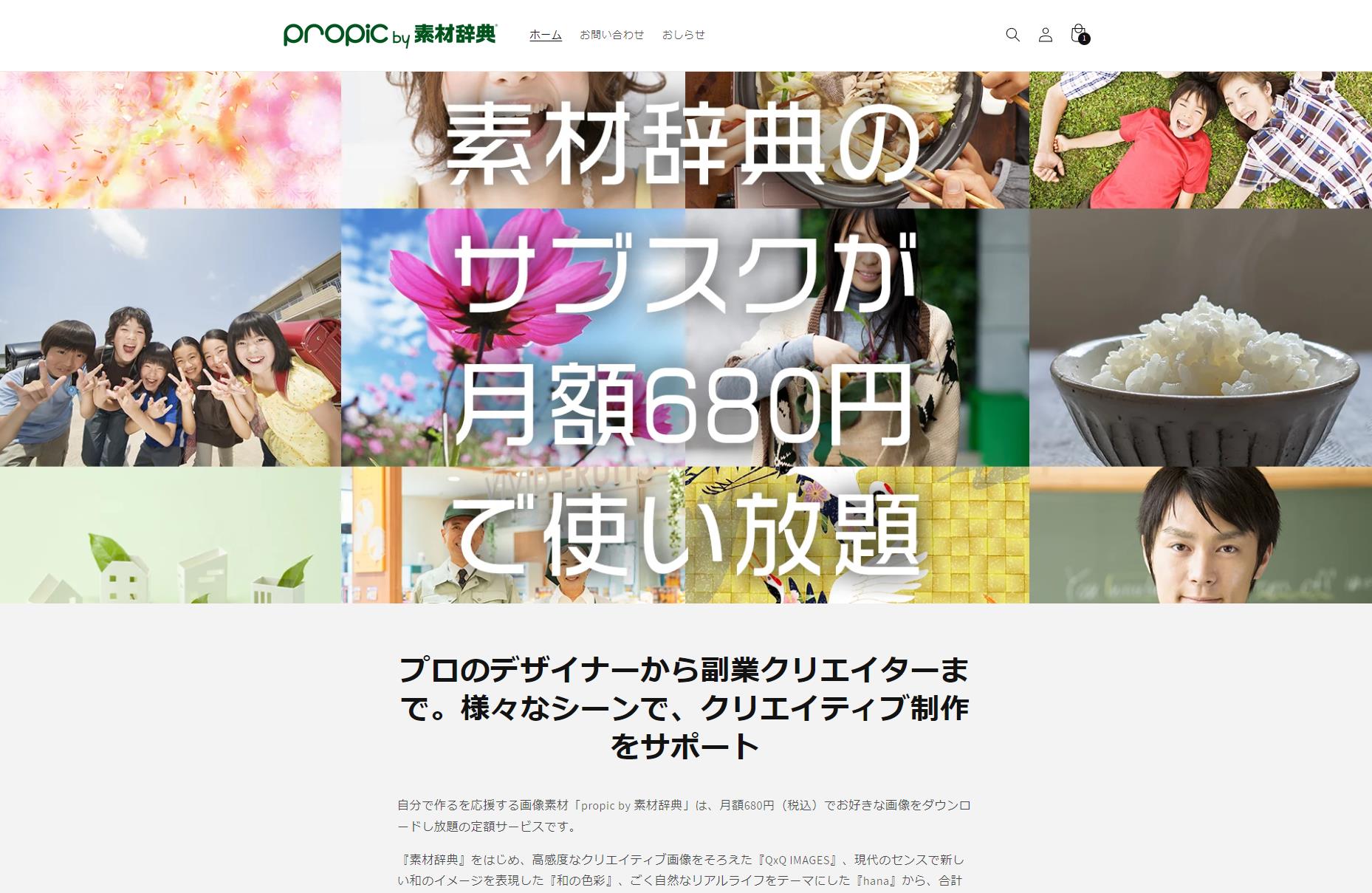propic by 素材辞典は、月額680円で『素材辞典』をはじめ、高感度なクリエイティブ画像をそろえた『QxQ IMAGES』、現代のセンスで新しい和のイメージを表現した『和の色彩』、ごく自然なリアルライフをテーマにした『hana』から、合計約9万点の画像をダウンロードし放題の定額サービス。
