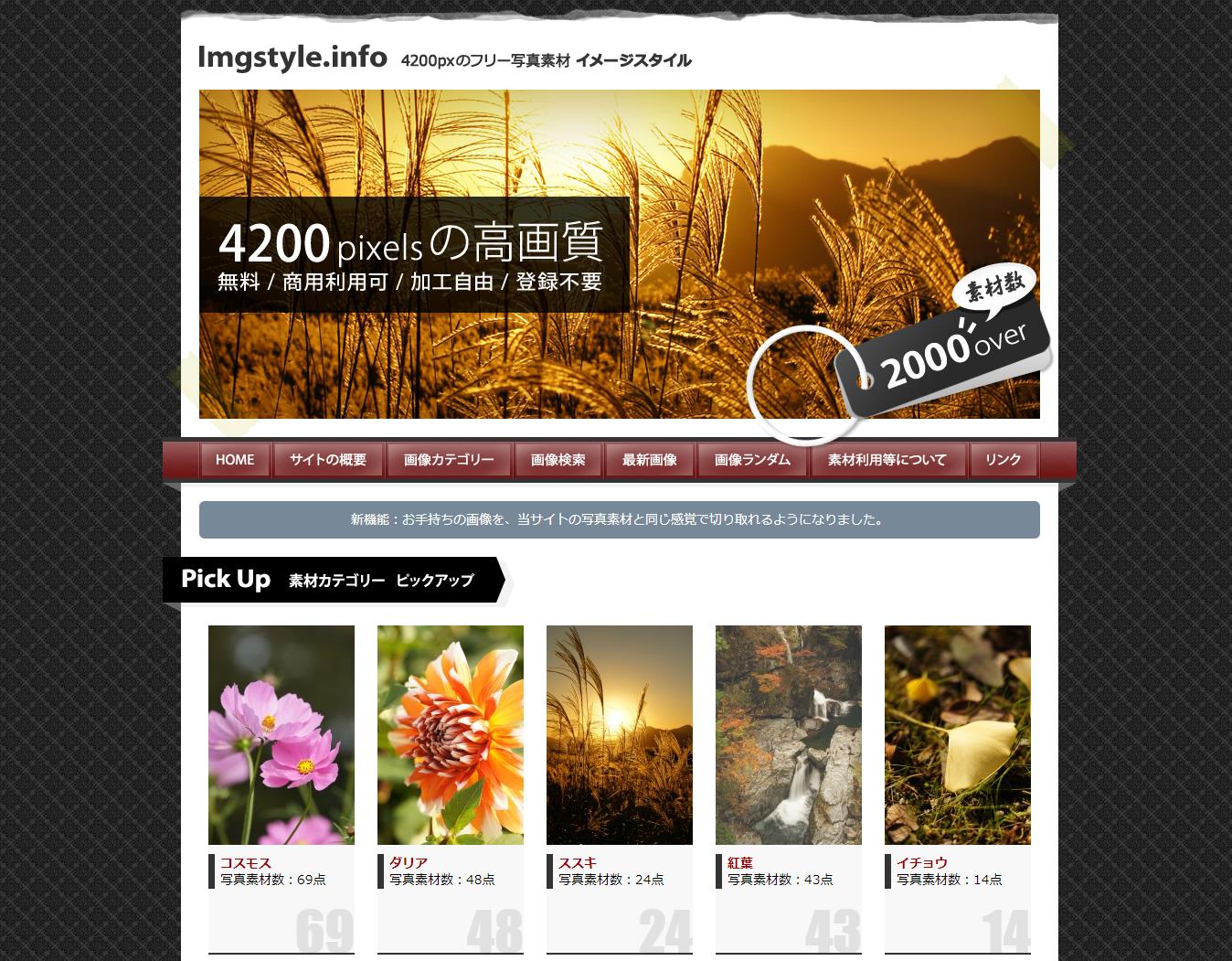 イメージスタイルは主に植物を中心とした4200ピクセルの高画質な写真素材を登録不要で無料ダウンロードが可能。