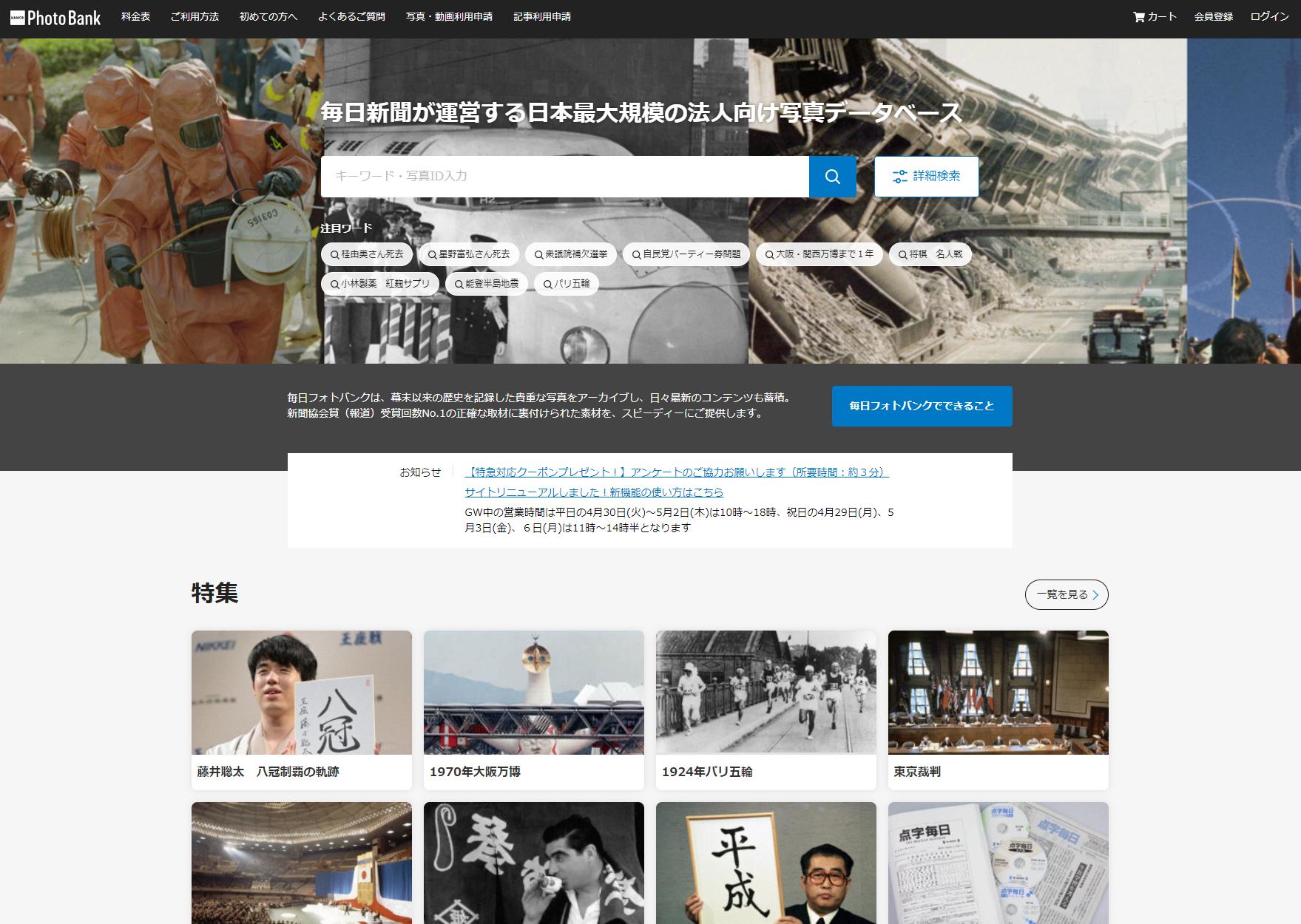 毎日フォトバンクは毎日新聞社が提供する日本最大規模の法人向け写真データーベースサイト。