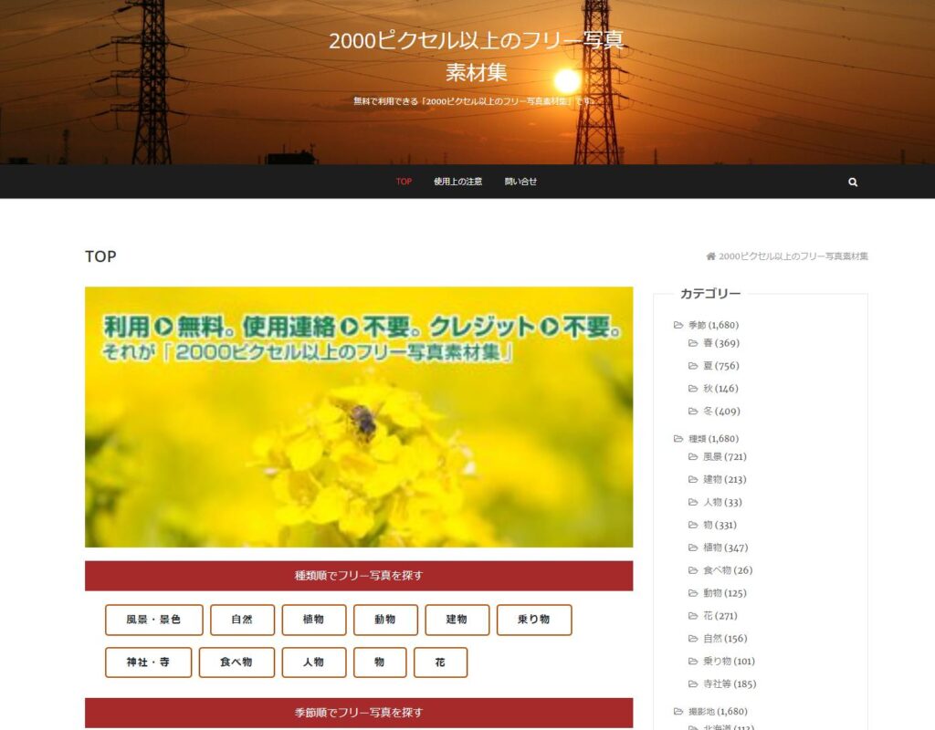 素材数は2000点と少なくカテゴリも偏ってはいるが、植物画像を探している方にはぴったりなサイト。